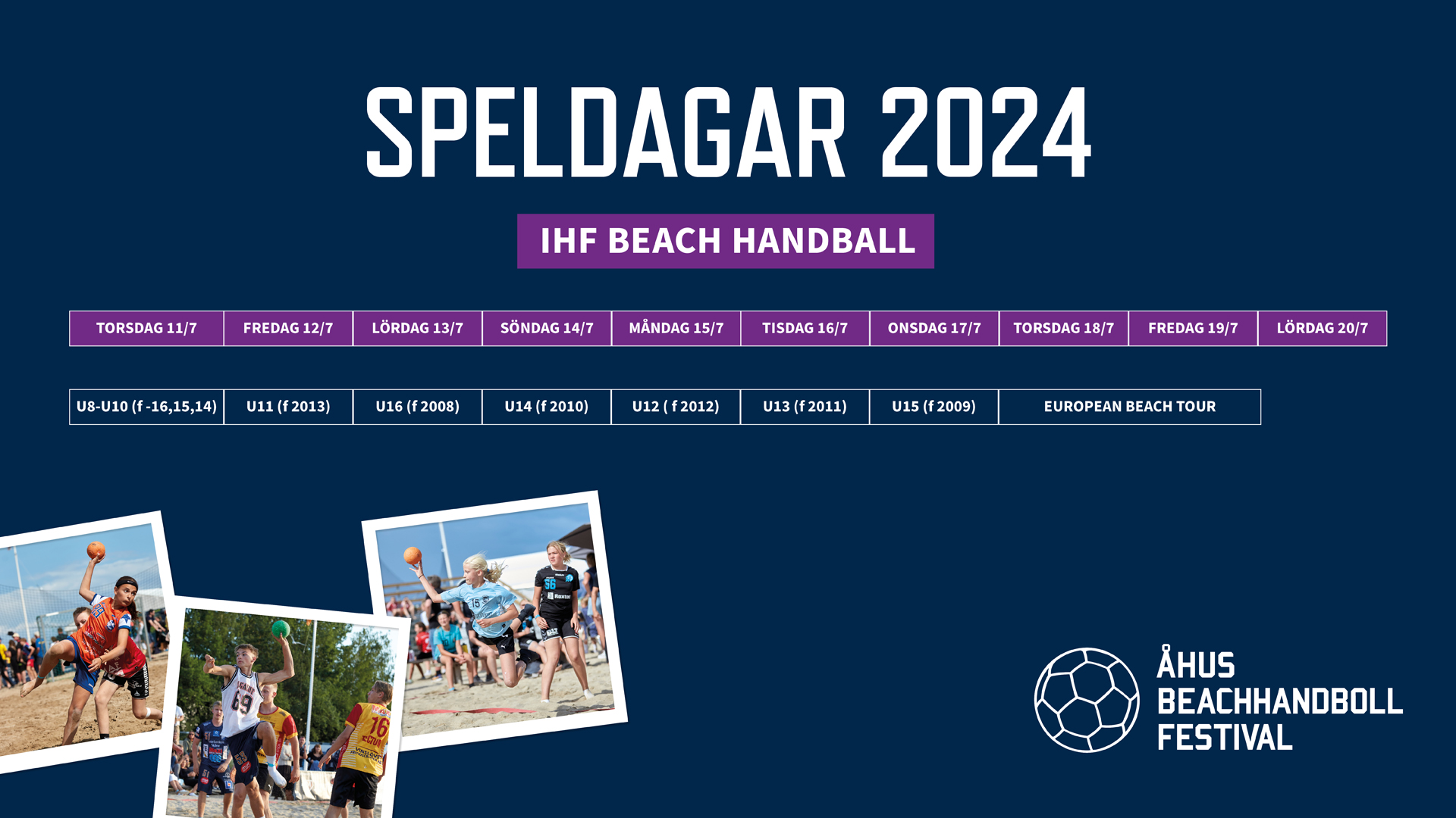 Speldagar 2025 Åhus Beachhandboll, juli 24, 2024 Här är speldagarna för sommarens handbollsfestival som spelas 10-19 juli 2025.